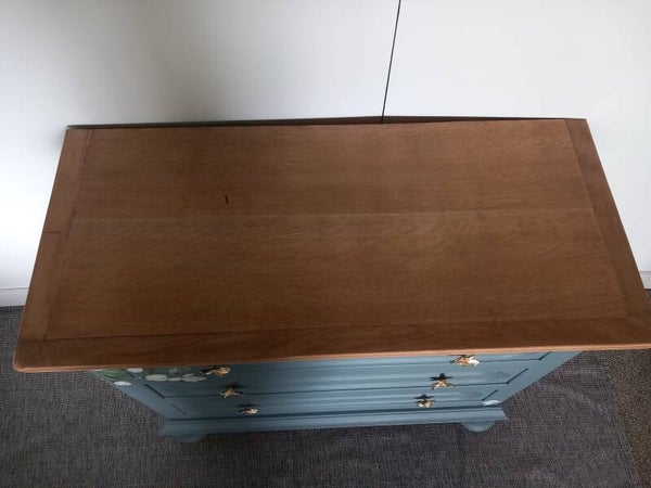 Eiken ladekast, deze ladekast heb ik geschilderd in de kleur Blue Pine van Fusion mineral Paint en afgewerkt met de Clear wax ook van Fusion.