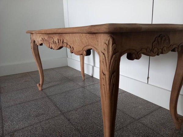 Salontafel met prachtig houtsnijwerk gezandstraald. We hebben deze bewust nog niet in een kleurtje gestoken maar dit kan uiteraard nog wel, geef ons gerust een seintje mocht u hierin interesse hebben.